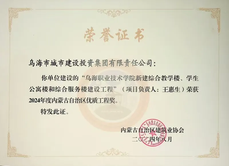 喜報!烏海市城建投融資有限責(zé)任公司一項目榮獲“2024年度內(nèi)蒙古自治區(qū)建筑工程優(yōu)質(zhì)工程獎”