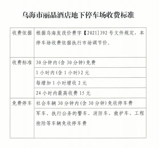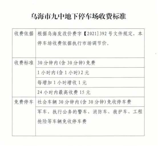 為緩解地面停車壓力,引導(dǎo)車輛有序停放,烏海市濱河九中地下停車場與麗晶國際酒店地下停車場已完成智能化升級改造。2024年7月25日經(jīng)海勃灣區(qū)城市管理綜合執(zhí)法局批準,兩個停車場于近期正式開展停車收費管理,收費標準見下表: