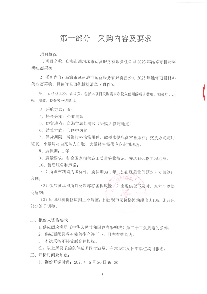 - 2025-11-07烏海市濱河城市運營服務(wù)有限責(zé)任公司中大型電動掃地機(車)供應(yīng)項目詢價文件
