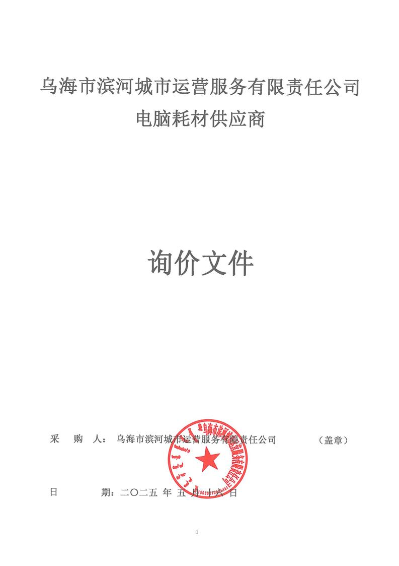 烏海市濱河城市運(yùn)營服務(wù)有限責(zé)任公司電腦耗材供應(yīng)商詢價文件