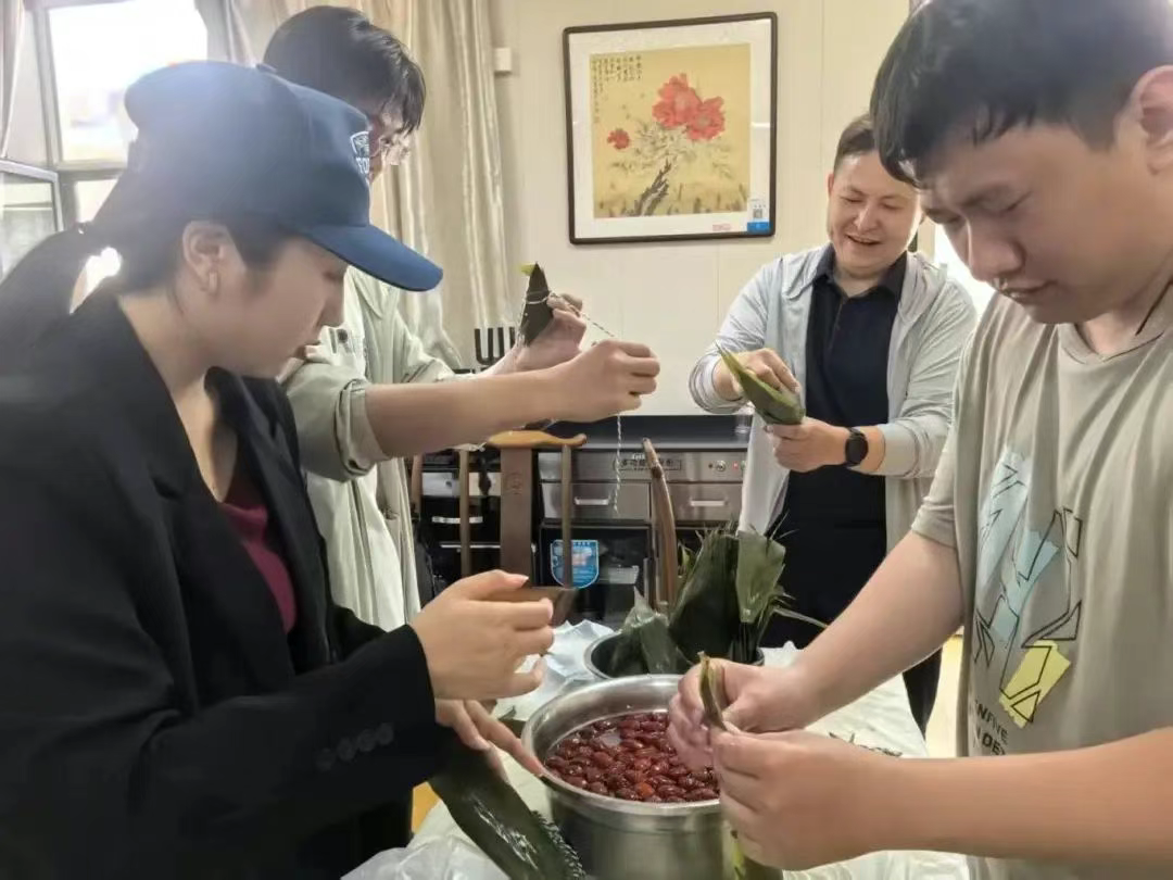 活動以艾草花束DIY手作拉開帷幕,大家以艾草為主材料,再搭配上裝飾掛件,一起動手制作艾草花束。一束束別具特色、香氣撲鼻的艾草花束,喚醒端午的儀式感。隨后,大家圍坐在職工餐廳,紛紛展示起了自己的包粽子手藝活,一個個裝滿糯米紅棗的粽子逐漸成形,這些粽子雖然模樣不盡相同,但都飽含著大家的心意和對節(jié)日的美好期待。