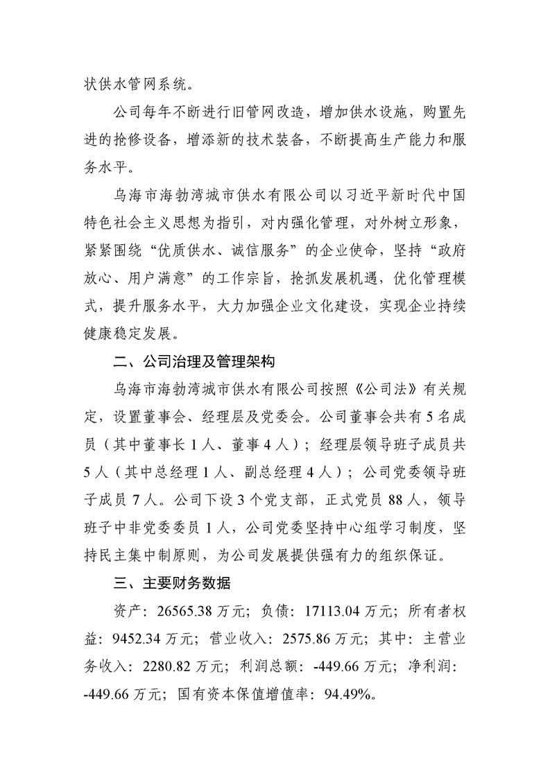 - 2025-03-10烏海市海勃灣城市供水有限公司2024年度信息公開報告