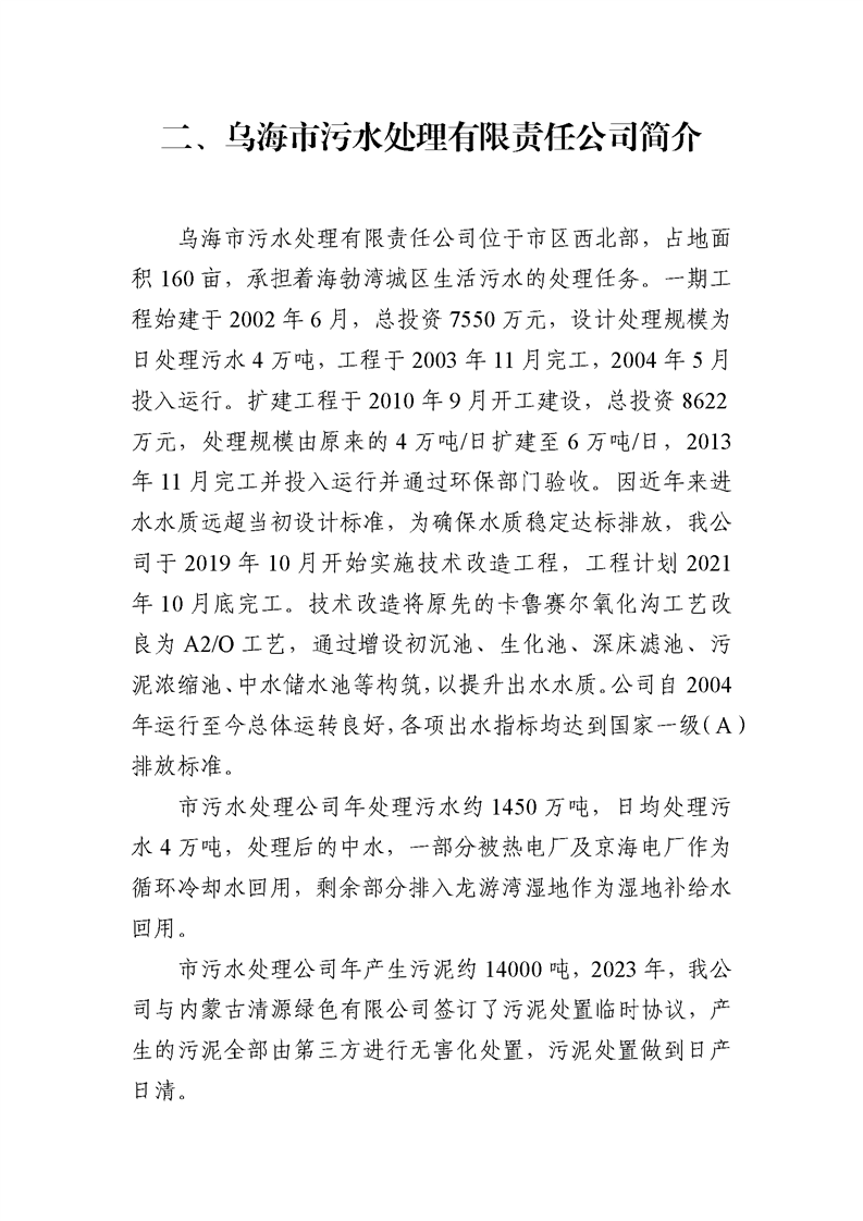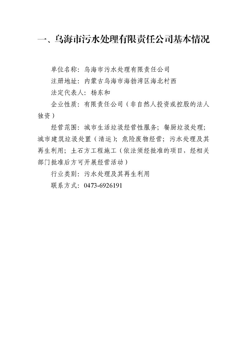 - 2025-04-10烏海市污水處理有限責任公司2024年度信息公開報告