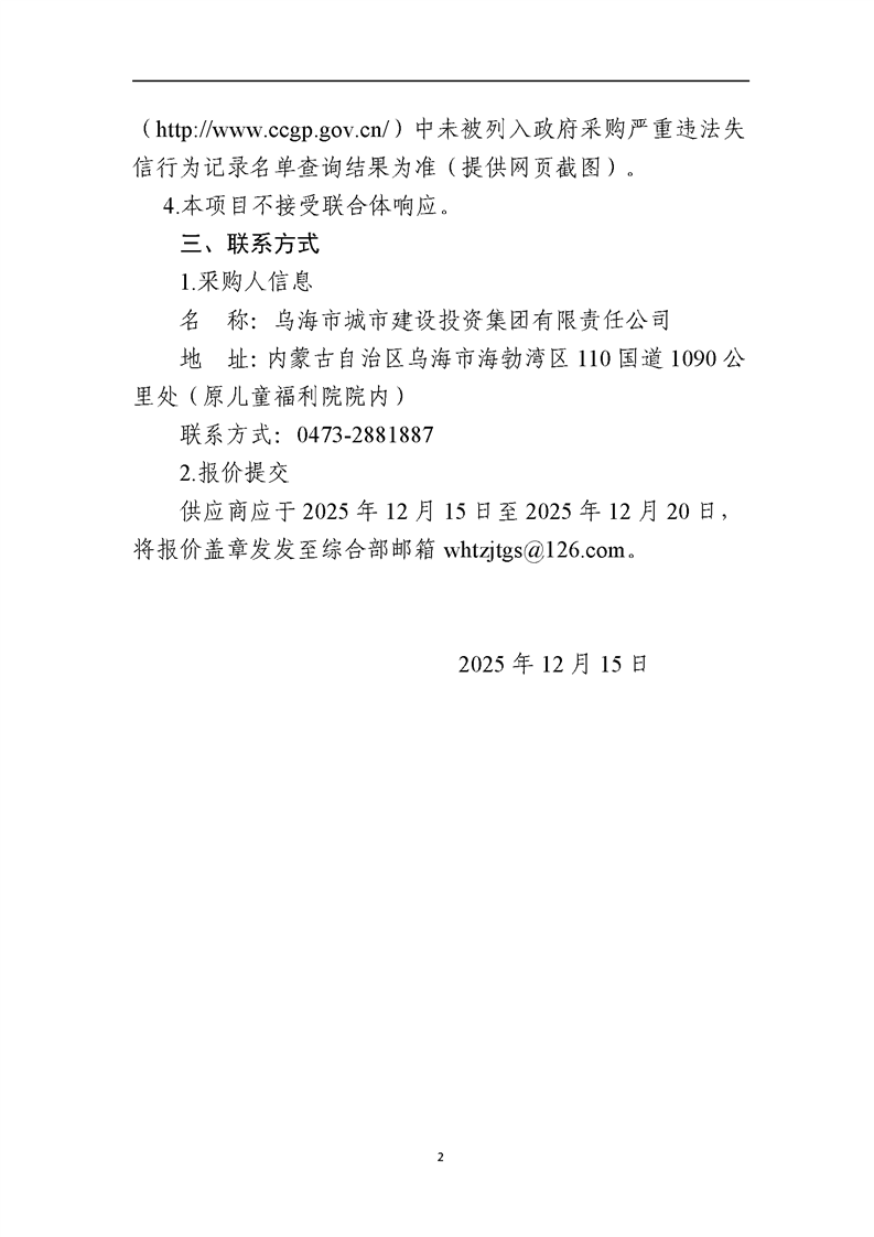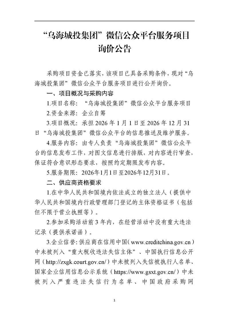 “烏海城投集團(tuán)”微信公眾平臺(tái)服務(wù)項(xiàng)詢價(jià)公告
