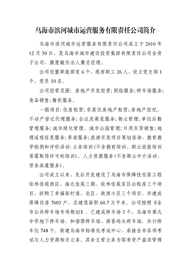 - 2025-03-10烏海市濱河房地產開發(fā)有限責任公司2024年度信息公開報告