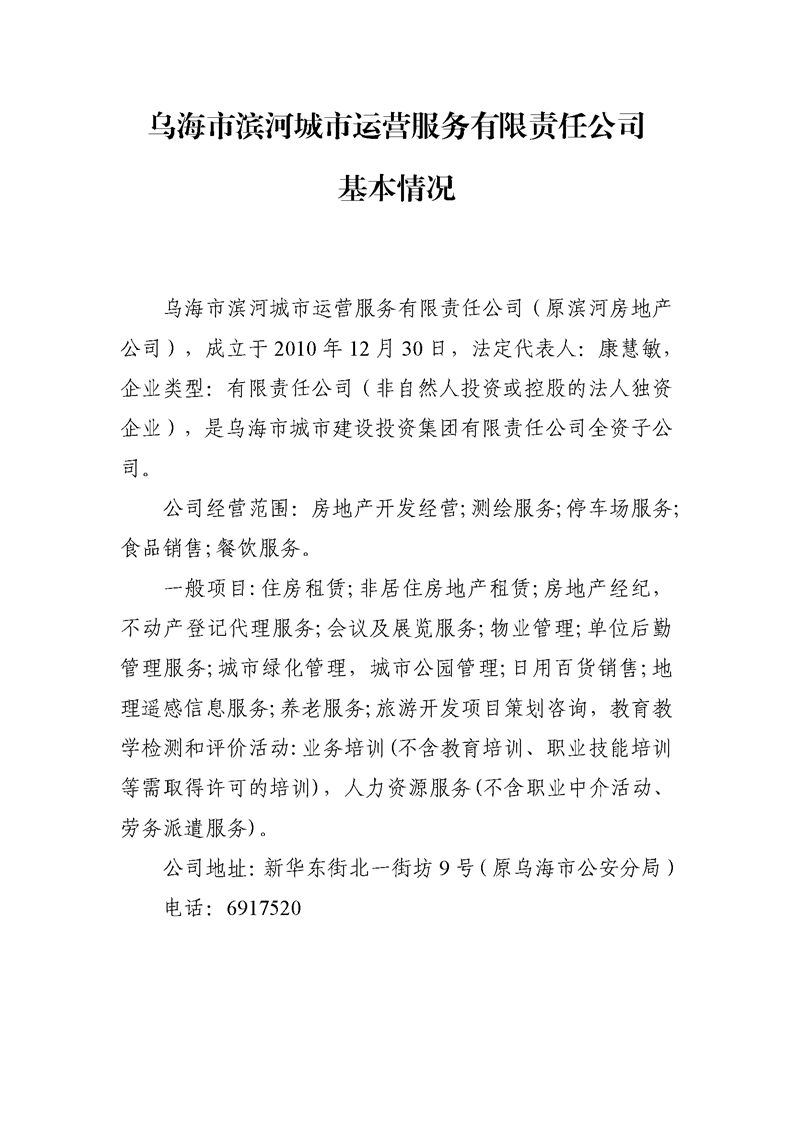 - 2024-07-09烏海市濱河房地產開發(fā)有限責任公司2024年第二季度信息公開