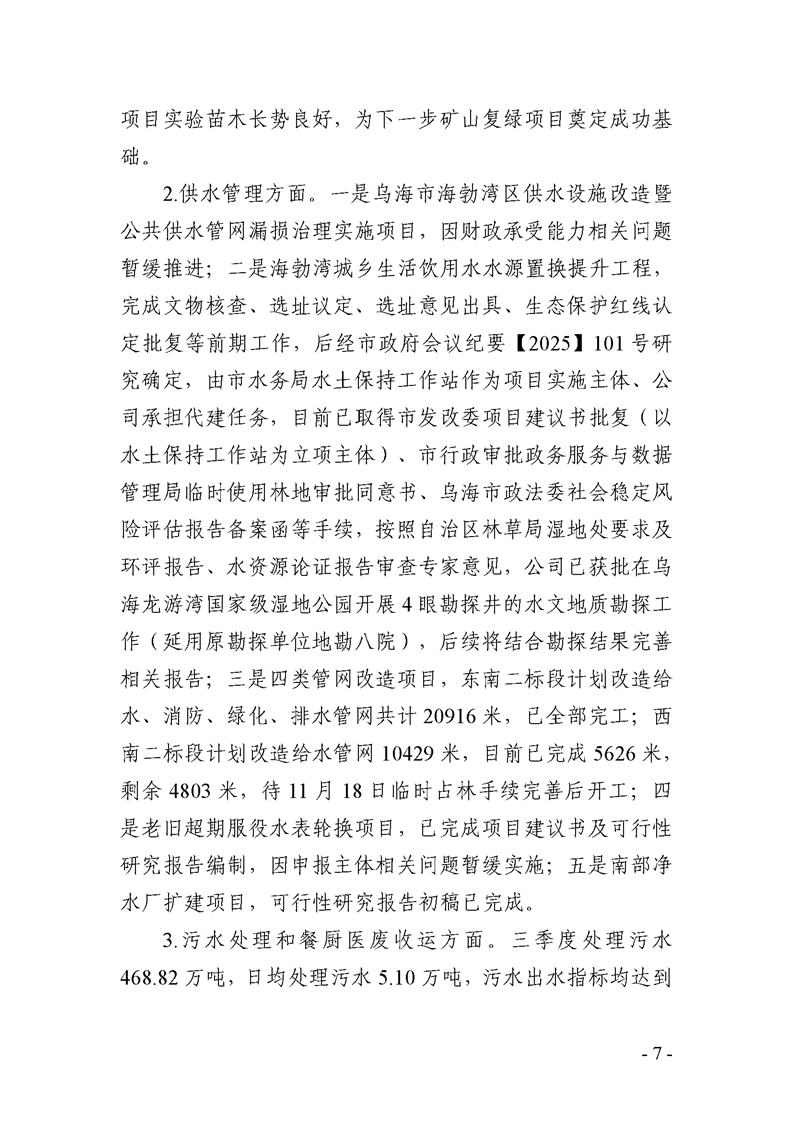 烏海市城市建設(shè)投資集團(tuán)有限責(zé)任公司 2025年度第三季度信息公開報(bào)告