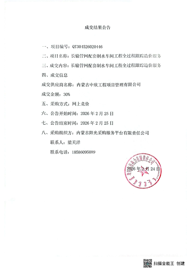 - 2026-02-25長輸管網(wǎng)配套制水車間新建工程監(jiān)理服務(wù)采購項目成交結(jié)果公告